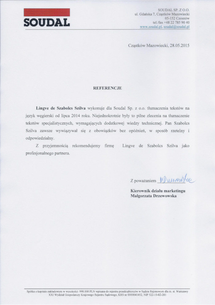 tłumaczenia na węgierski Soudal
